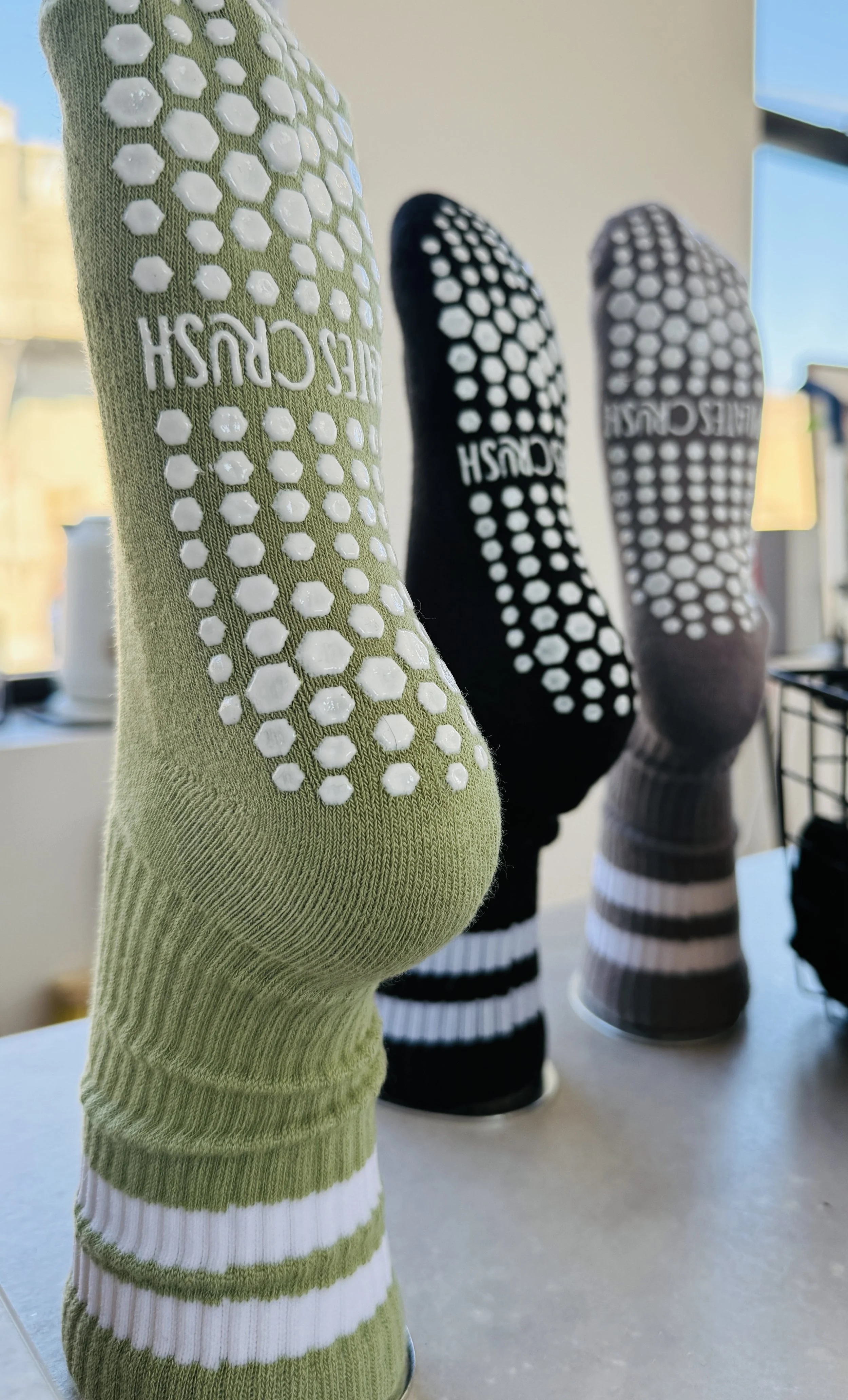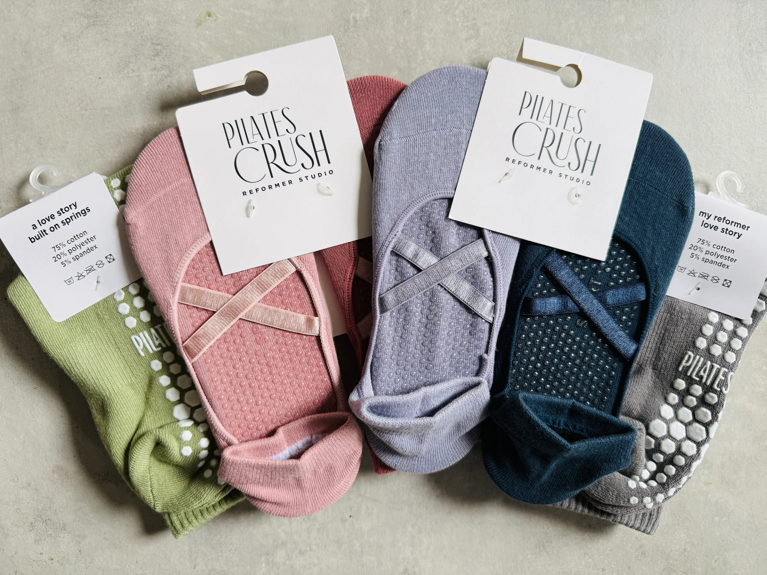 Developed product copy and packaging language in collaboration with ChatGPT for the studio merchandise line, including custom hair ties and grip sock packaging. Created short, playful phrases that reflected the brand’s personality, including “Mind Your Core,” “Plank You Very Much,” and “Got a Crush on Pilates” for the double sided printed hair ties, and “Crushing It in Sunnyside,” “My Reformer Love Story,” and “A Love Story Built on Springs” for the sock packaging.